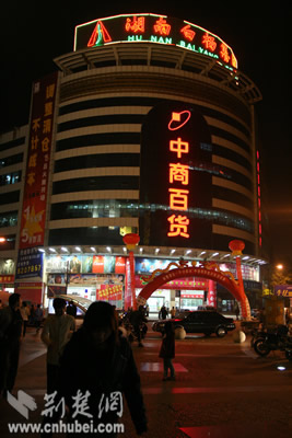 在岳陽最繁華的云夢路步行街,人流涌動、霓虹閃爍,記者看到武商集團岳陽購物中心正在隆重招商。此前,中商百貨已在這里開設了該集團的首家省外分店。