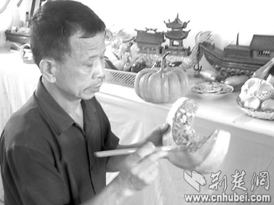 民間藝人黃茂才,在武鋼一材料廠干舞臺美工,練得一手好手藝。2002年單位排練舞蹈“辣妹子”,他用泡沫給12位演員分別做了一串火辣辣的辣椒,幾可亂真。