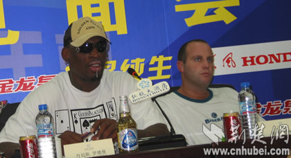 羅德曼和經(jīng)紀(jì)人戴瑞.普林斯在見面會上