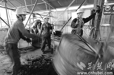 復(fù)雜的地質(zhì)結(jié)構(gòu)讓先進(jìn)的機(jī)械設(shè)備使不上勁,百米深的樁基只能靠人工來(lái)完成。本報(bào)記者楊平攝