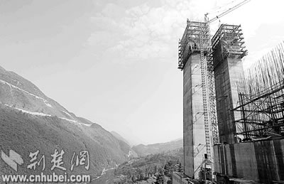 當我們小心翼翼爬上馬水河大橋已修至47米高的橋墩時,當我們戰(zhàn)戰(zhàn)兢兢走在野三河高懸百米的施工吊橋上時,當我們驚嘆于四渡河幽深的峽谷時,當我們走進艱難掘進的野三關(guān)隧道時,橋的險,隧的難,如一幅色調(diào)凝重而恢宏的畫卷,一一展現(xiàn)眼前。
