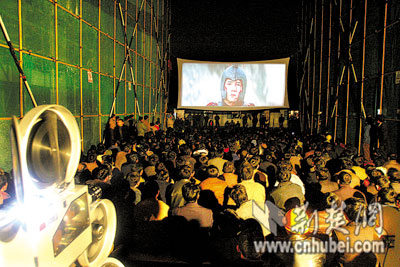 荊楚網(wǎng)(楚天都市報(bào))(記者 楊峰洲 黃宏 通訊員 崔偉 攝影)昨晚,電影《神話》在武漢江岸區(qū)二七路“黃浦人家”建筑工地放映,500多名農(nóng)民工兄弟度過了一個(gè)充滿愛的夜晚。