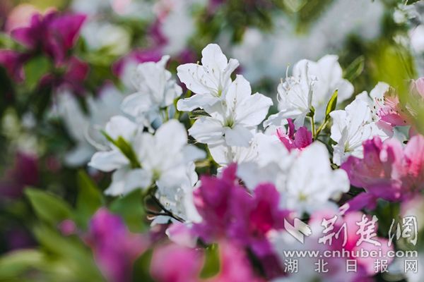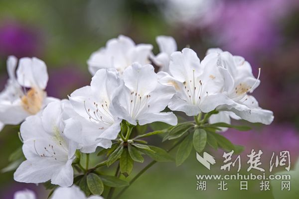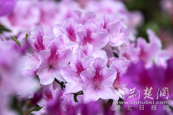 杜鵑花色艷麗,武漢植物園的杜鵑除紅色、紫色、粉色、白色等單色外,還有綠色杜鵑和復(fù)色杜鵑花。從國(guó)外引進(jìn)的綠色杜鵑品種“綠色光輝”,花朵小巧玲瓏,色如碧玉,十分罕見。復(fù)色杜鵑“皇冠”花朵白粉相間,粉紅色鑲邊,素雅又不失顏色,一掃杜鵑的艷麗姿態(tài),既清新又迷人。