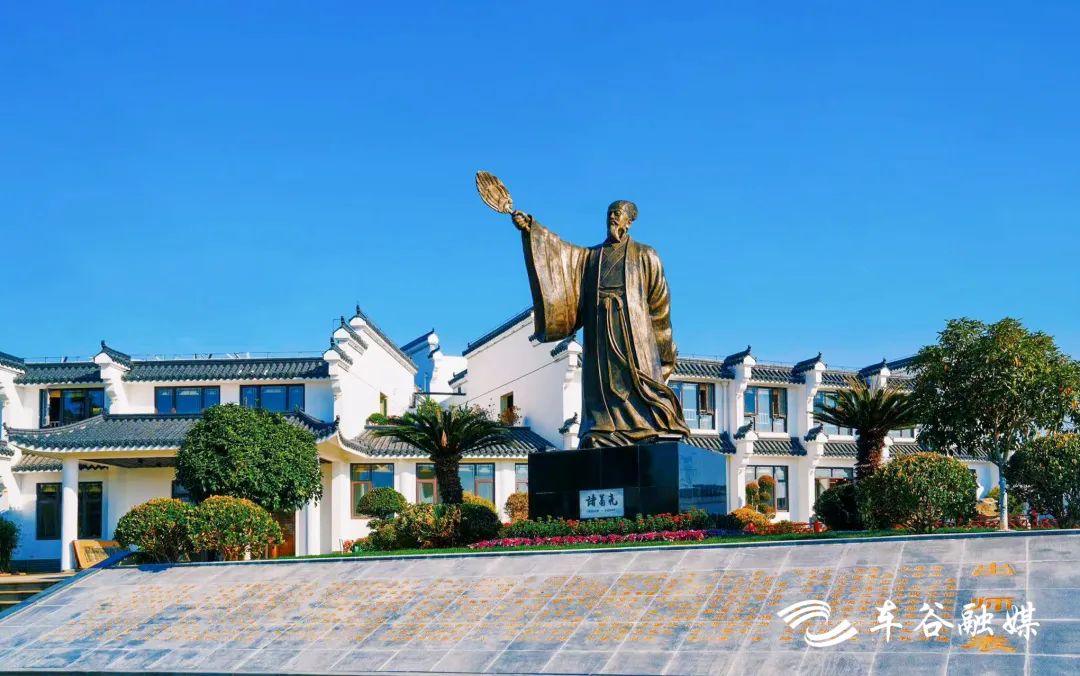 走進諸葛城,樹木蔥蘢、河湖密布。清澈如鏡的武侯池邊,諸葛亮塑像峨冠博帶、高舉羽扇,讓人仿佛穿越時空,回到1800年前的赤壁古戰(zhàn)場——