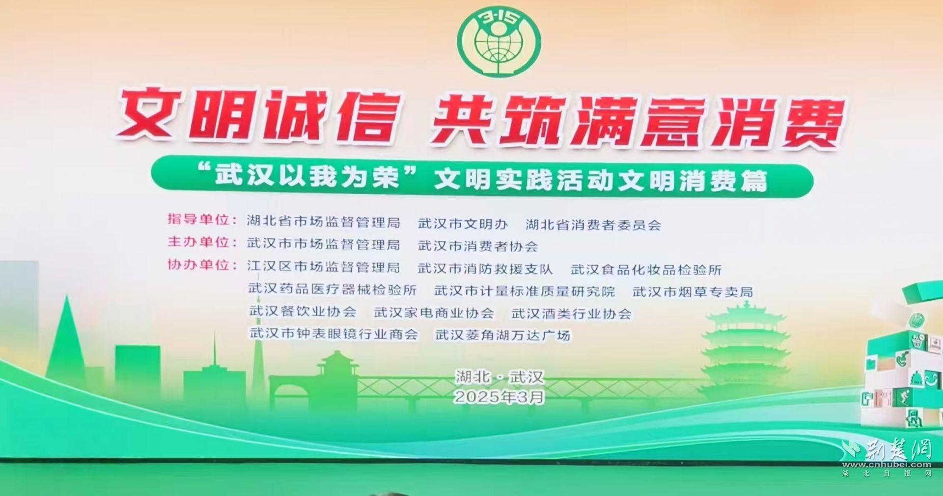 荊楚網(wǎng)(湖北日報網(wǎng))訊(記者 何婧 通訊員 趙袁 蘭莉)今年“3·15”是第43個國際消費者權益日。3月12日,武漢市市場監(jiān)管局、武漢市消費者協(xié)會在江漢區(qū)菱角湖萬達廣場啟動“文明誠信 共筑滿意消費”“武漢以我為榮”文明實踐活動文明消費篇,進一步倡導市民文明理性消費,維護消費者合法權益。
