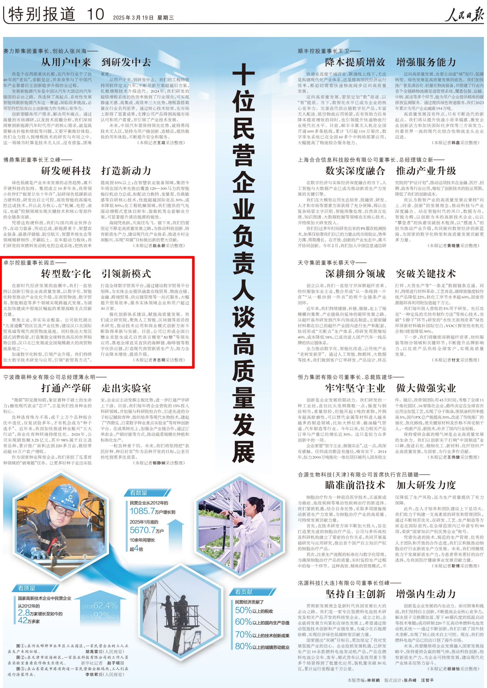 人民日報今推出特別報道《十位民營企業(yè)負責(zé)人談高質(zhì)量發(fā)展》,湖北卓爾控股董事長閻志接受采訪——