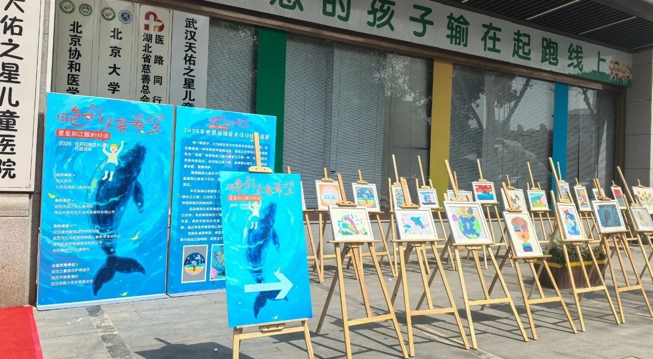 2025年4月2日,在第18個世界孤獨(dú)癥關(guān)注日當(dāng)天,“星星與江豚的對話”繪畫巡展于武漢西北湖公園畔溫暖開展,30幅由孤獨(dú)癥兒童創(chuàng)作的畫作吸引數(shù)百名市民駐足。