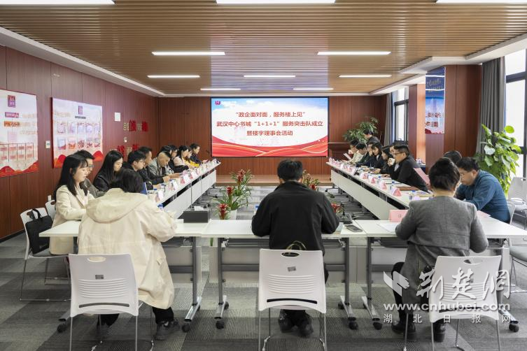 “企業(yè)反映的‘政策獲取難’‘問題解決慢’‘資源對接少’三大難題,就是我們成立服務(wù)隊的初衷。”隨著紅色授旗儀式完成,武漢中心書城“1+1+1”服務(wù)突擊隊正式成立。