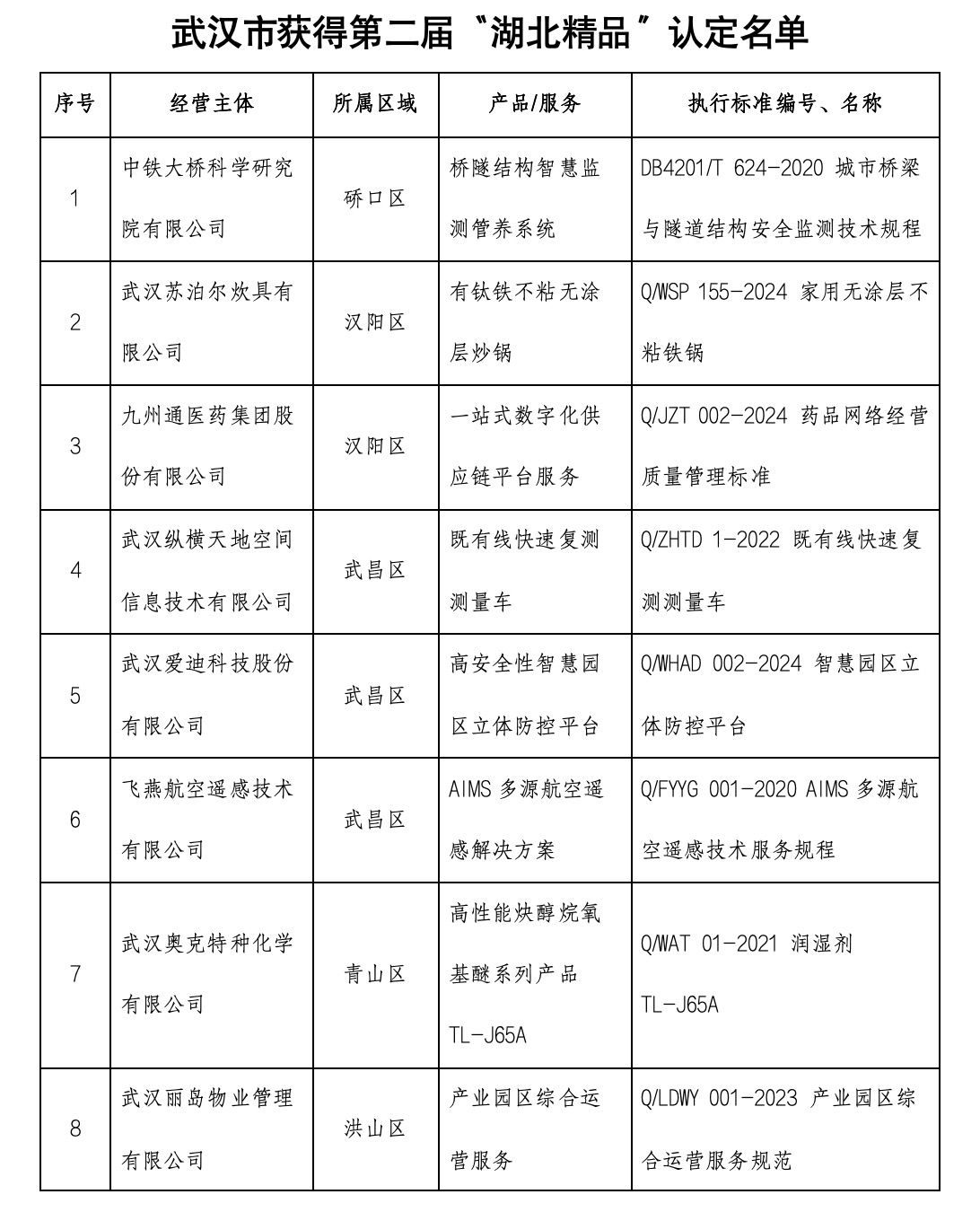 自2023年湖北省開展“湖北精品”培育和認定以來,市市場監(jiān)管局積極構(gòu)筑質(zhì)量品牌標桿梯隊,優(yōu)化完善“武漢精品”“湖北精品”梯次培育體系,全市417家企業(yè)進入“武漢精品”培育庫,344家企業(yè)進入“湖北精品”培育庫。2024年,武漢市35項產(chǎn)品(服務)被認定首屆“武漢精品”、31項產(chǎn)品(服務)被認定首屆“湖北精品”。