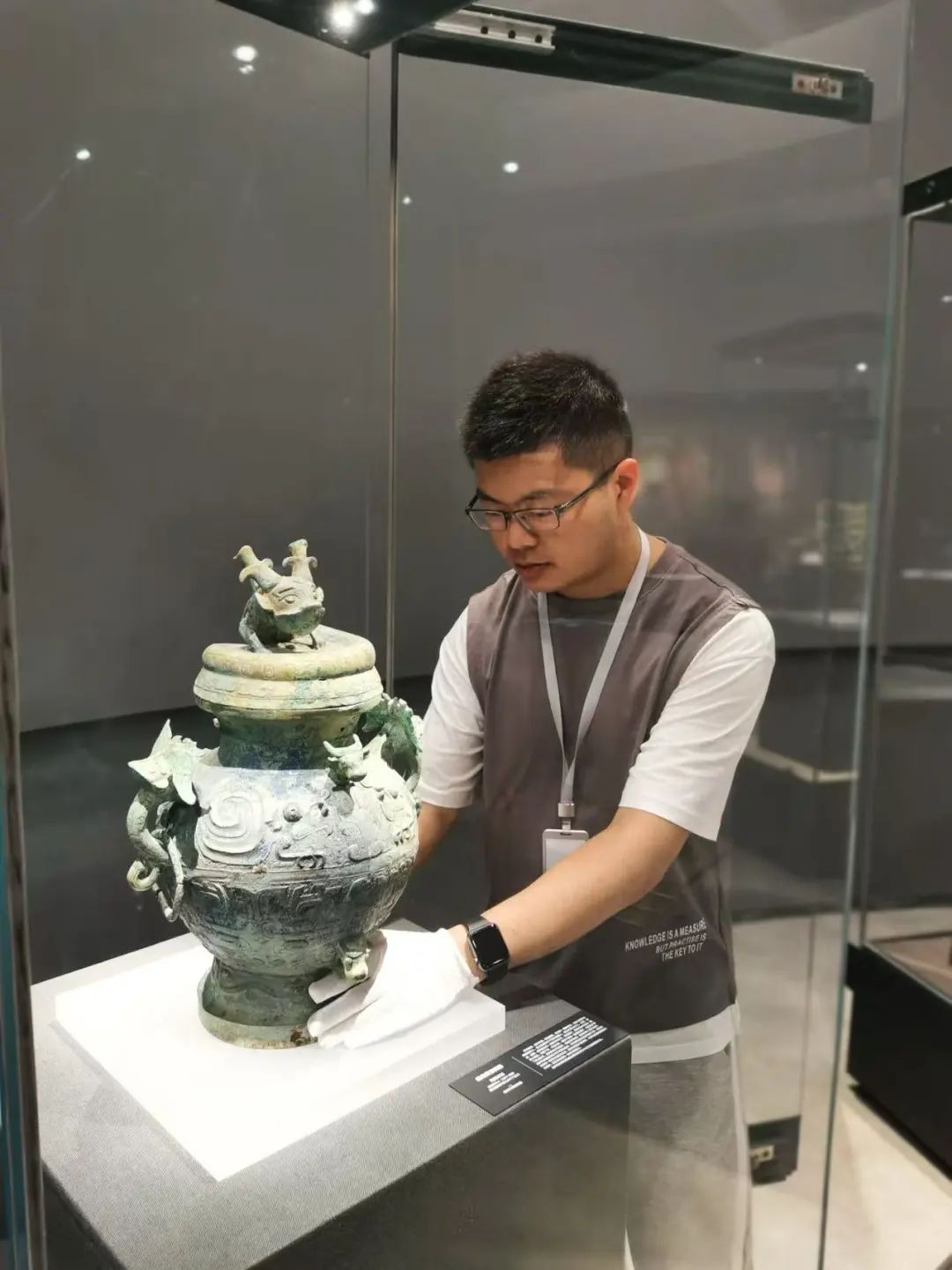 2021年6月,廖航在盤龍城遺址博物院開(kāi)展“長(zhǎng)江萬(wàn)里青——長(zhǎng)江流域青銅器精品展”布展工作