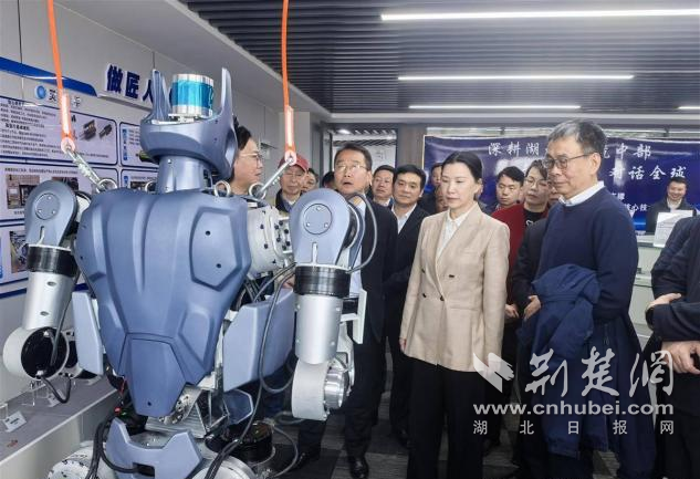 這是湖北省首個機器人領域技術創(chuàng)新中心,該中心由湖北科峰智能傳動股份有限公司牽頭,聯(lián)合華中科技大學、武漢大學等20余所高校院所及產業(yè)鏈頭部企業(yè)共建,聘請中國工程院院士陳學東擔任戰(zhàn)略咨詢委員會主任、中國科學院院士劉勝擔任學術委員會主任。這標志湖北在機器人核心技術創(chuàng)新與產業(yè)轉化上邁出關鍵一步。今年亮相“新春第一會”的“天問”1號人形機器人,由武漢大學劉勝院士團隊研發(fā)。全身關節(jié)有30個自由度,靈巧手有7個自由度。它的傳感器、靈巧手、仿生關節(jié)和芯片等核心部件,80%實現(xiàn)了“鄂研鄂產”。