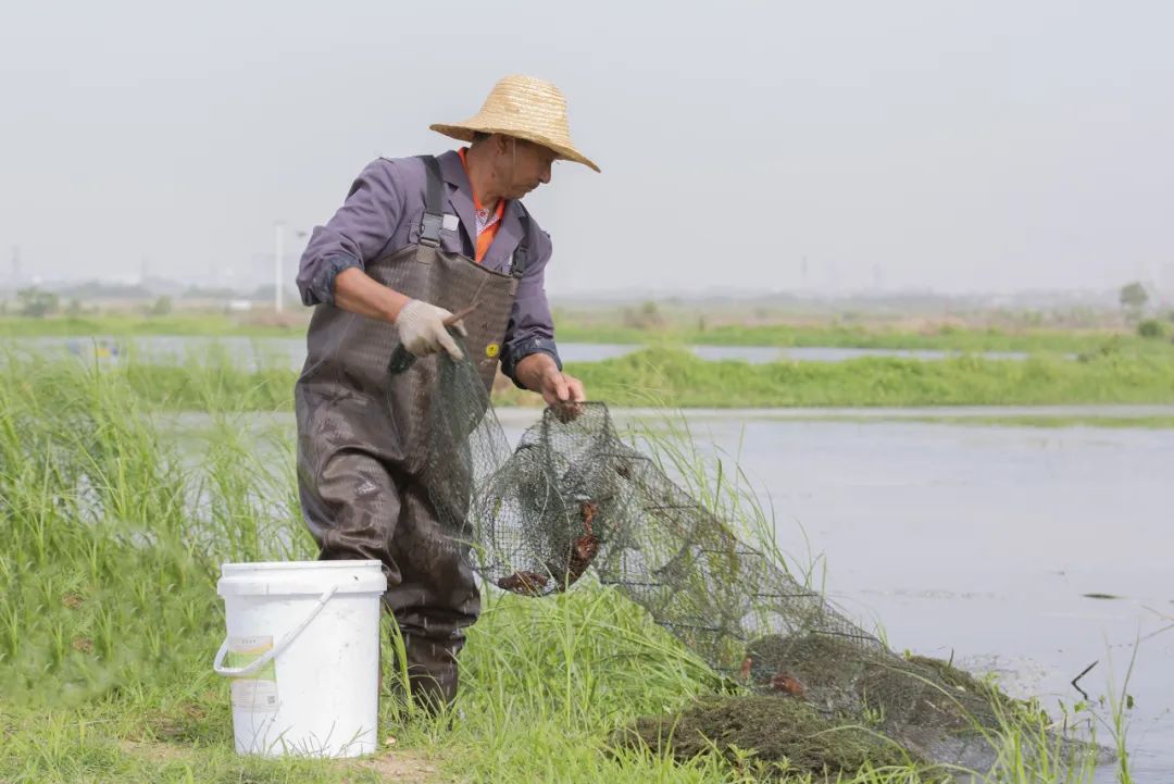 位于祁家灣街雙墩村的武漢中胤生態(tài)農(nóng)業(yè)專業(yè)合作社內(nèi),連片的小龍蝦養(yǎng)殖基地格外壯觀,蝦農(nóng)們身著防水服,將提前放置在蝦田中的蝦網(wǎng)緩緩撈起,隨著蝦網(wǎng)破水而出,一只只外殼紅亮、活力十足的小龍蝦在網(wǎng)中翻騰跳躍,水波蕩漾間,處處透著生機。