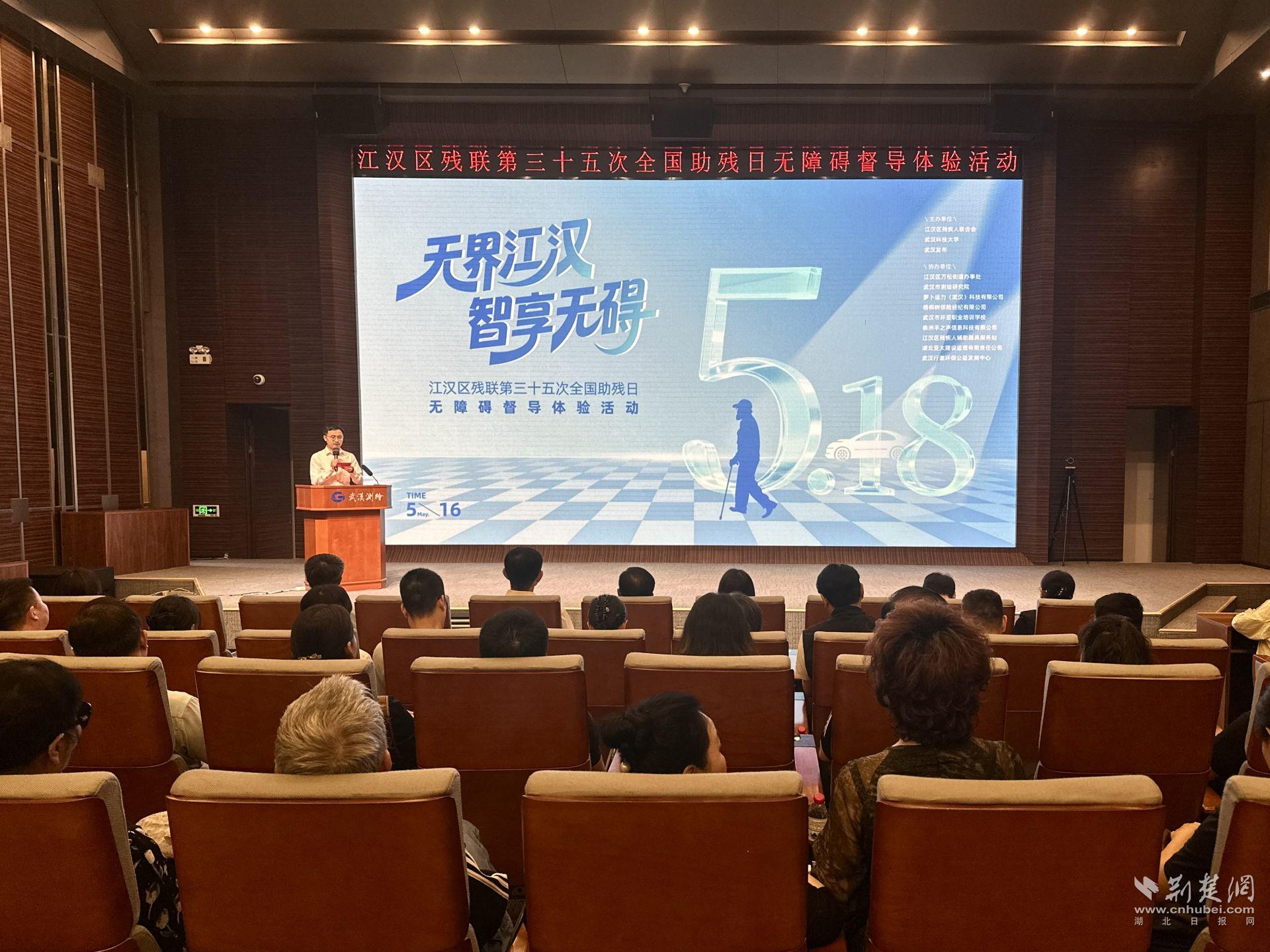 當(dāng)天,在武漢市江漢區(qū)殘聯(lián)舉辦的“無(wú)界江漢 智享無(wú)礙”無(wú)障礙督導(dǎo)體驗(yàn)活動(dòng)中,專家學(xué)者、人大代表、志愿者與殘疾人代表等百余人共聚一堂,在實(shí)踐中檢驗(yàn)無(wú)障礙環(huán)境建設(shè)成果,用沉浸式科技體驗(yàn),助推無(wú)障礙環(huán)境建設(shè),提升城市溫度。