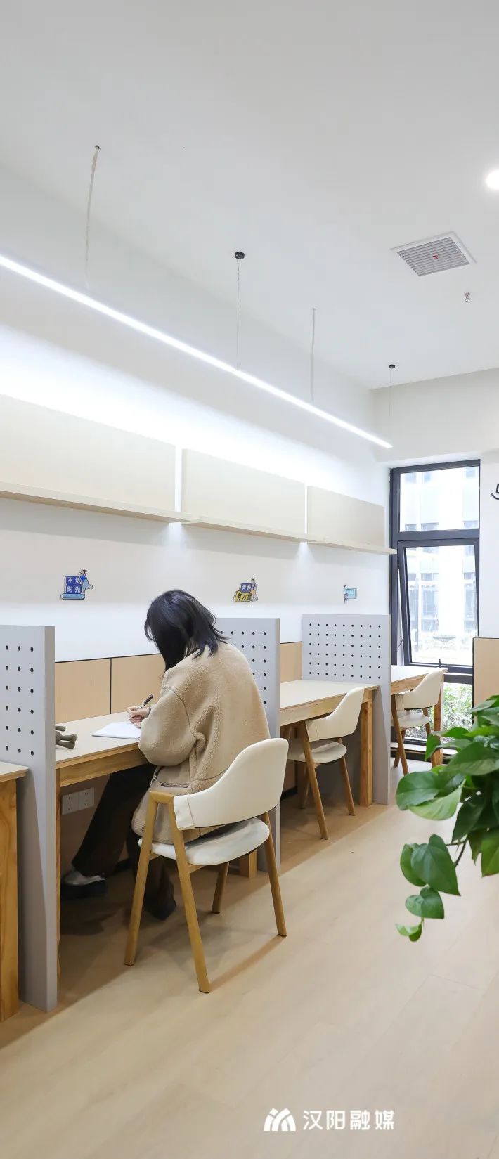 △公寓一樓,青年驛站、青年夜校、共享自習(xí)室內(nèi),年輕人樓上安家,樓下創(chuàng)業(yè)。
