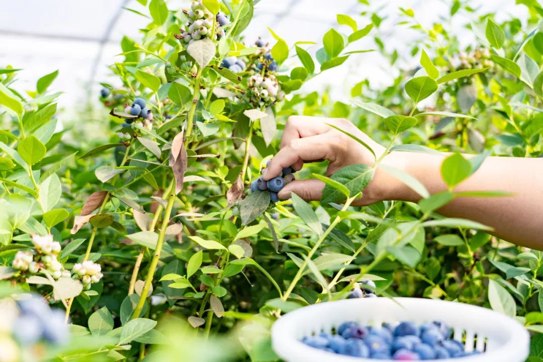 目前基地?fù)碛兴{(lán)莓大棚200余畝,露天種植區(qū)100余畝,預(yù)計(jì)藍(lán)莓畝產(chǎn)可達(dá)2000斤以上。