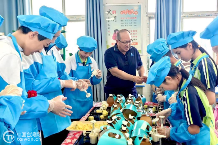 活動中,武漢臺協(xié)及臺商代表向?qū)W校捐贈電腦設(shè)備、教育資助金及節(jié)日禮物,學(xué)生回贈感謝卡。隨后,臺商與30余名學(xué)生分組結(jié)對,共同體驗綠豆糕制作、蛋糕裱花等傳統(tǒng)文化DIY項目。