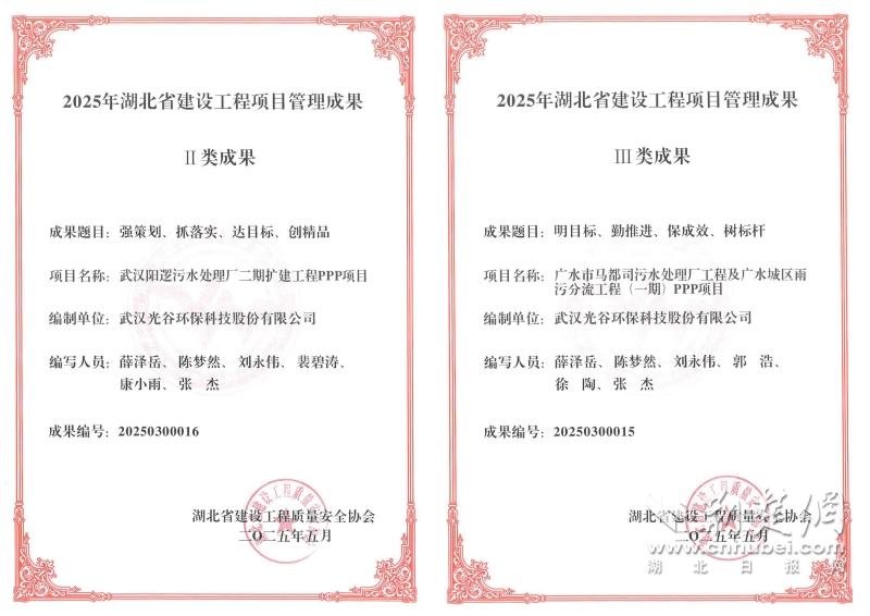 光谷環(huán)保項(xiàng)目管理成果證書(shū)。通訊員供圖