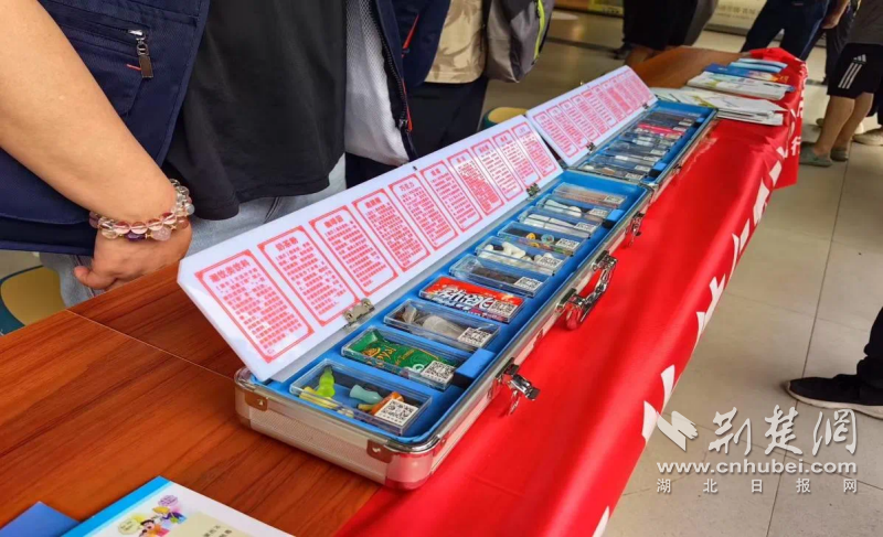 在長港路地鐵站出口,還可以看到江漢區(qū)司法局和禁毒部門組織陳列展示的“奶茶粉”“跳跳糖”等30種新型偽裝毒品。戒毒民警結合這些新型毒品的特點,對來往的行人深入講解其隱蔽性、危害性以及防范要點,著重提醒市民在出入娛樂場所時務必提高警惕。