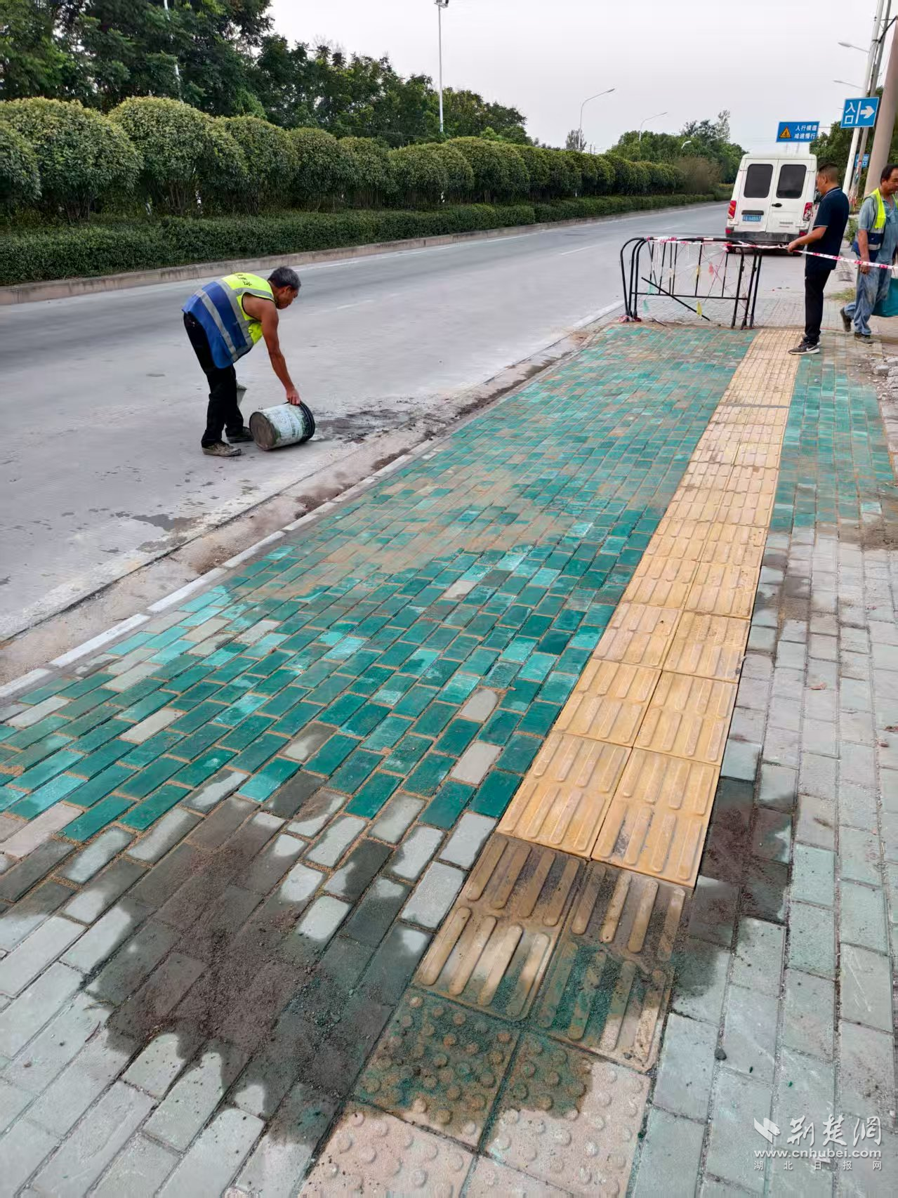 施工過程中,同樣嚴格把控每一道流程,確保磚塊貼合牢固,有效避免日后松動問題。同時,團隊還對區(qū)域內(nèi)的盲道等無障礙設(shè)施進行了全面排查與完善,全力為特殊人群出行提供安全保障。