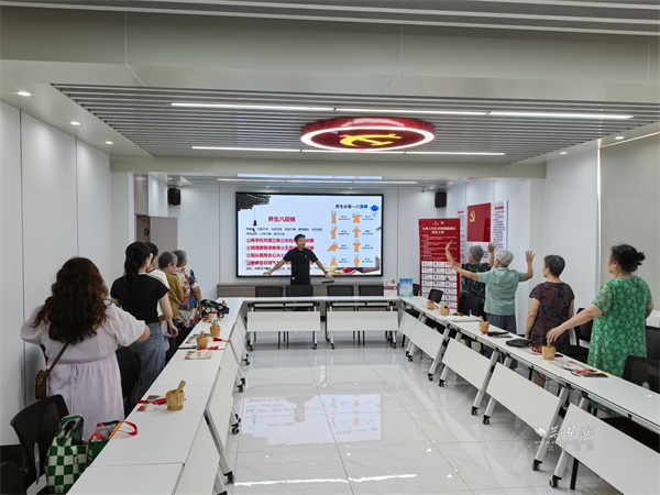 隨后,醫(yī)師帶領(lǐng)居民們學(xué)習(xí)傳統(tǒng)養(yǎng)生功法“八段錦”。伴隨著舒緩的口令,大家認(rèn)真練習(xí)“雙手托天理三焦”“左右開弓似射雕”等動作,體驗中國傳統(tǒng)運(yùn)動在調(diào)理氣血、舒緩壓力方面的功效。