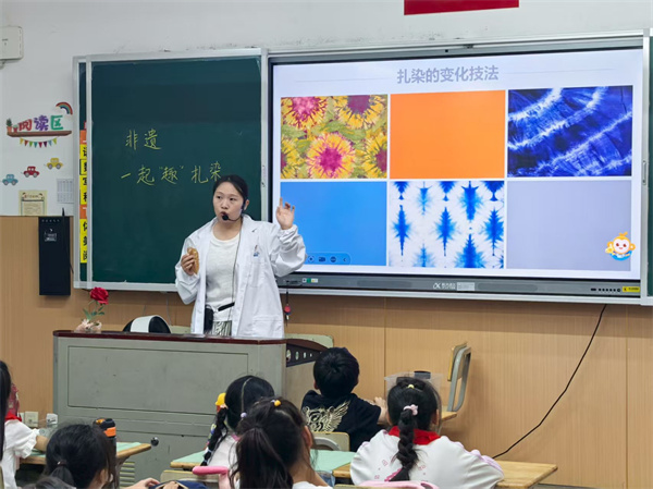 老師向孩子們科普扎染知識(shí)。 通訊員供圖