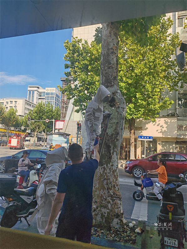 荊楚網(wǎng)(湖北日報網(wǎng))訊(通訊員 甘厚芳 周佳穎)近日,在武昌區(qū)黃鶴樓街道新就業(yè)群體服務(wù)驛站門口,一棵梧桐樹上悄然聚集起蜂群,逐漸形成蜂巢,對過往行人及驛站休憩人員構(gòu)成安全隱患。恰在驛站休息的外賣騎手吳杰與李志虎發(fā)現(xiàn)這一情況后,迅速反應(yīng)、主動作為,展現(xiàn)出高度的責(zé)任意識和應(yīng)急處置能力。