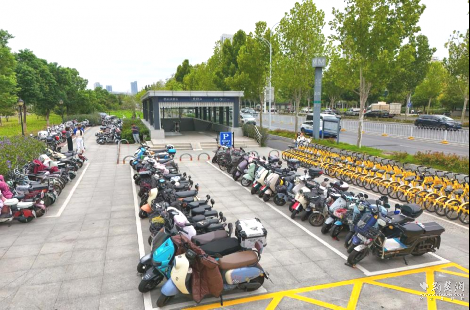 荊楚網(wǎng)(湖北日報網(wǎng))訊(記者 何婧 通訊員 汪玉平 黃慕潔 羅樂)清晨七點(diǎn)半的金山大道,陽光正好灑在二雅路地鐵站C出口。王女士騎著小電動,熟練地把車停進(jìn)新劃的白色線框里?!艾F(xiàn)在可算不用兜圈子找車位了!”她鎖好車,抬眼看了看站口那塊醒目的藍(lán)牌子——“居民電動車??奎c(diǎn)”“共享單車區(qū)”,幾個大字清清楚楚。不過幾分鐘,她已經(jīng)刷卡進(jìn)站,步履輕松。