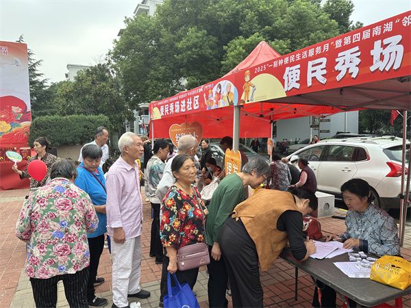 活動現(xiàn)場,最引人矚目的莫過于“鄰里惠民季”的暖心布局。社區(qū)不僅聯(lián)動中商平價南湖店、黃鶴樓酒業(yè)、忠林口腔等十余家單位,將優(yōu)惠商品與專業(yè)服務(wù)“搬”到居民家門口,更特別邀請新洲區(qū)邾城街道龍橋村黨支部帶來助農(nóng)專場推介。新鮮飽滿的農(nóng)特產(chǎn)品整齊陳列,龍橋村黨支部書記現(xiàn)場講解產(chǎn)品種植故事,讓居民們在選購優(yōu)質(zhì)食材的同時,為助農(nóng)增收出一份力。此外,“便民秀場”人氣爆棚,縫補、修鞋、磨刀等免費服務(wù)點前排起長隊,師傅們嫻熟的手藝解決了居民生活中的“小煩惱”,一句句“太方便了”“太貼心了”成為現(xiàn)場最動人的稱贊。