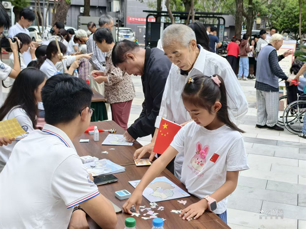 非遺體驗(yàn)區(qū)內(nèi),月餅 DIY 工坊前排起長隊(duì),家長與孩子攜手包餡、壓模,將團(tuán)圓心意揉進(jìn)面團(tuán);團(tuán)扇拓印區(qū)里,居民在志愿者指導(dǎo)下,把桂樹、福字等圖案拓印在扇面,感受傳統(tǒng)手工藝的細(xì)膩;十八籽手串制作區(qū),一顆顆珠子串聯(lián)起對(duì)節(jié)日的美好期盼?!坝⑿廴宋镏嗌佟薄凹t色拼圖賽”“軍民大生產(chǎn)”等游戲讓居民在趣味中重溫紅色記憶?!昂秃⒆右黄鹱鲈嘛?,我比孩子還開心!”帶著孫子參與的胡老師笑著說。