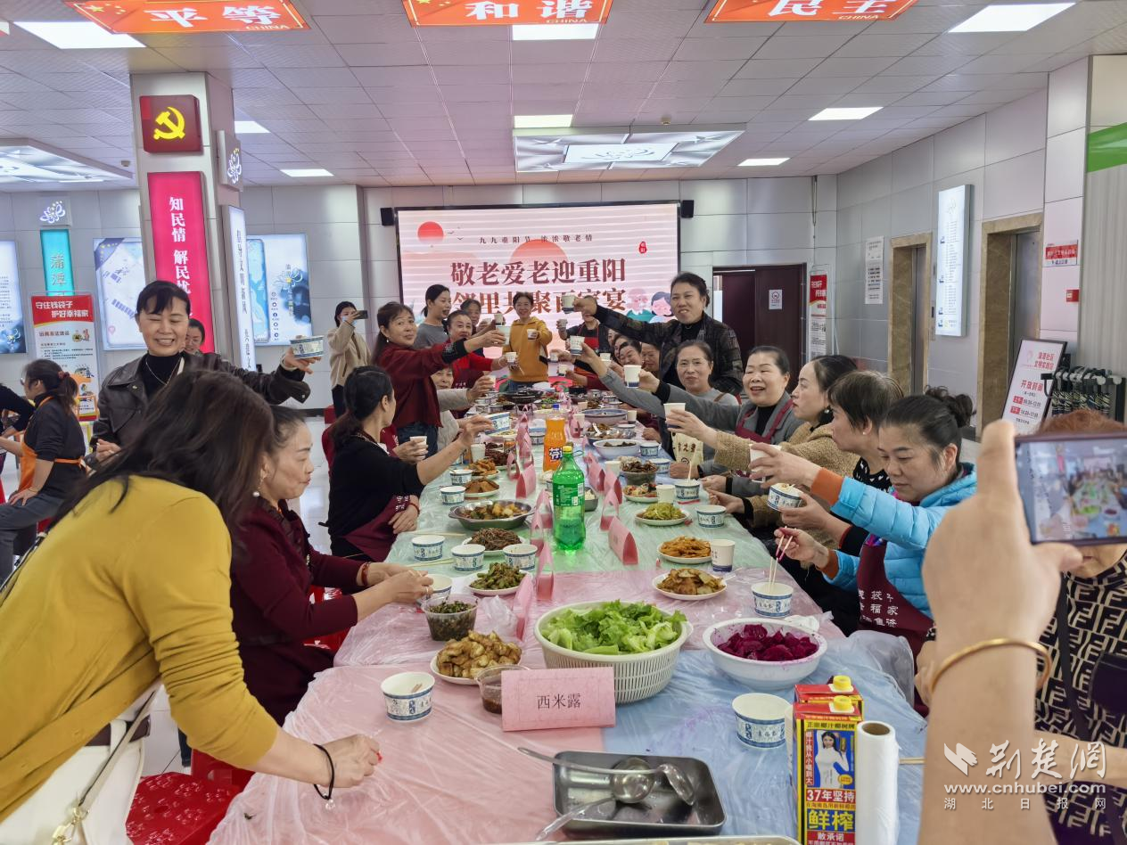 當(dāng)天上午,蒲潭社區(qū)老年學(xué)校與居家養(yǎng)老服務(wù)中心以“敬老愛老迎重陽,鄰里共聚百家宴”為主題,舉辦了一場熱鬧的重陽百家宴活動。為廣大老年居民送上第一份“暖心禮”。社區(qū)居民歡聚一堂,煮餃子、炸雞冠餃,品佳肴、唱?dú)g歌,共慶佳節(jié)。