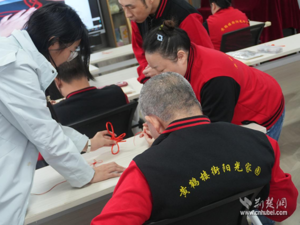 在中國(guó)結(jié)編織互動(dòng)中,志愿者手把手教學(xué)員編織寓意吉祥的中國(guó)結(jié)。編織過程既鍛煉了手部協(xié)調(diào)能力,又通過互幫互助增進(jìn)了彼此情誼,現(xiàn)場(chǎng)充滿歡聲笑語?;顒?dòng)尾聲,青年志愿者為每位學(xué)員送上自己親手制作的中國(guó)結(jié),傳遞美好祝福。