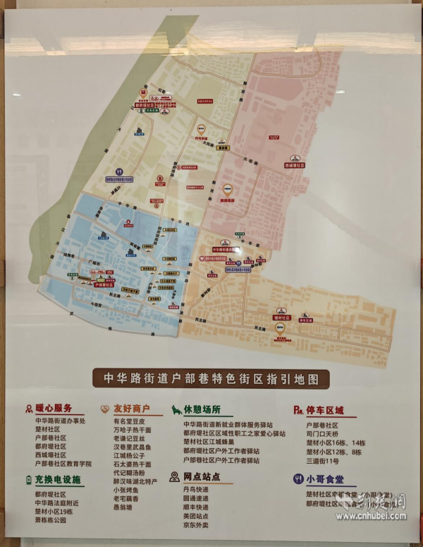 這一切的背后,是“戶部巷老茶館”聯(lián)席議事制度的有力支撐。騎手停車難?社區(qū)立即協(xié)調(diào),騰挪出專用停車位。取餐高峰期擁擠?社區(qū)出面與商戶溝通,促成“騎手優(yōu)先”的默契。社區(qū)還聯(lián)合騎手們,共同繪制了一份戶部巷友好街區(qū)地圖,清晰標注出“小哥食堂”、友好商家、充換電點等關(guān)鍵位置,成為騎手們?nèi)耸忠环莸摹肮ぷ鲗毜洹?。從“關(guān)鍵小事”到“發(fā)展大事”,騎手們的建議真正做到了“件件有回應(yīng),事事有著落”。