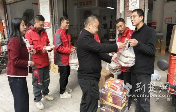 為讓快遞員在高強度工作中感受到關懷,近日,江漢區(qū)唐家墩街道香江新村社區(qū)黨委聯(lián)合湖北省中西醫(yī)結合醫(yī)院職工食堂,于“雙十一”期間將“小哥食堂”的溫暖送至京東、德邦等快遞網點,為一線快遞員送上熱騰騰的午餐,用實際行動表達敬意與支持。