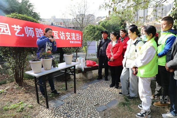 當(dāng)天,社區(qū)園藝師跨區(qū)互訪(fǎng)交流活動(dòng)在沙港社區(qū)舉行,來(lái)自全市各區(qū)的28名社區(qū)園藝師與沙港社區(qū)志愿者,通過(guò)實(shí)地探訪(fǎng)、動(dòng)手實(shí)操、互動(dòng)分享,圍繞社區(qū)花墻打造、秋冬季病蟲(chóng)害防治等話(huà)題展開(kāi)深度交流,在互學(xué)互鑒中共同提升園藝服務(wù)水平。