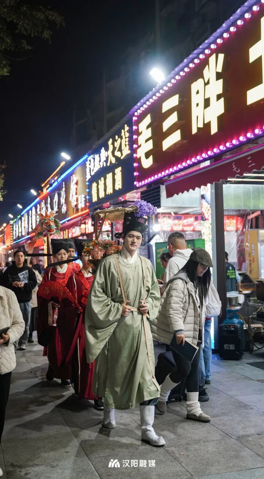 今晚,頭戴烏紗帽、身著飛魚服的“狀元郎”化身“首席引烤官”,帶領(lǐng)舉人秀才巡街互動(dòng),一句“客官骨骼清奇,必是吃貨轉(zhuǎn)世”逗樂全場(chǎng)。更勁爆的是,“知音漢陽(yáng)”視頻號(hào)直播間狂撒福利:無敵燒烤、毛大佑、老油條等10家名店“限時(shí)霸王餐”線上直送,解鎖免費(fèi)擼串的快樂!