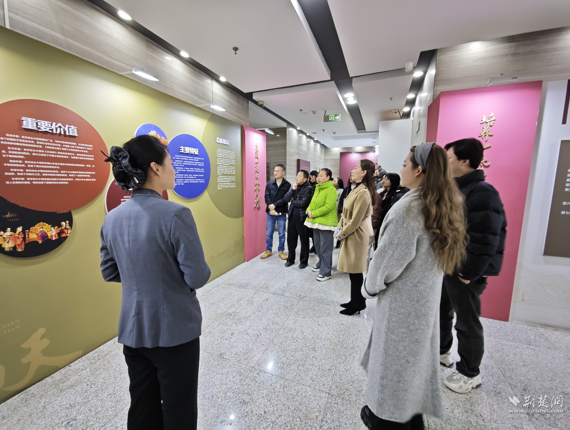 隨后,一行人來到武漢杖頭木偶戲?qū)n}展。在非遺傳承保護(hù)人的講解下,大家近距離了解杖頭木偶的制作工藝、表演技巧及保護(hù)傳承成果。一刀一刻的匠心、一舉一動的神韻,讓成員們直觀感受到傳統(tǒng)藝術(shù)背后的時(shí)間厚度與文化力量。
