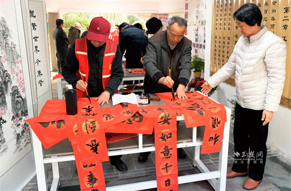 工會(huì)小組成員為居民書寫對(duì)聯(lián)。 通訊員供圖