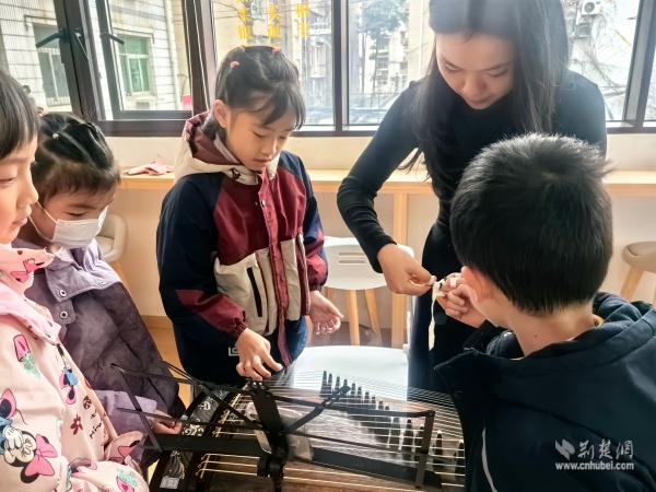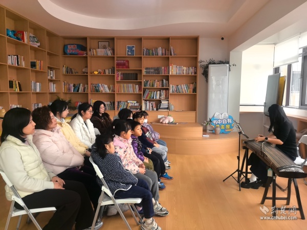 當天上午,黃鶴書房內(nèi)箏聲潺潺,以“琴潤書香遇知音”為主題的古箏生活美學(xué)雅集在這里上演。二十余位居民齊聚一堂,在專業(yè)老師的帶領(lǐng)下,共同走進古箏的悠遠世界。