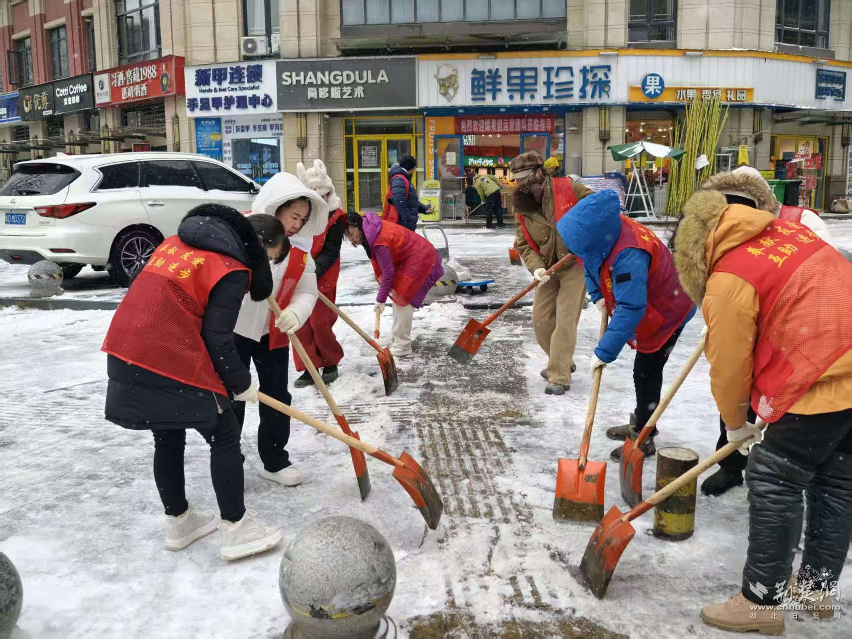 陳家墩社區(qū)則結(jié)合老舊小區(qū)多、坡道多的實(shí)際情況,提前明確分片包干責(zé)任,將單元門口、背街小巷和易結(jié)冰路段列為重點(diǎn)區(qū)域,組織街道工作人員與社區(qū)黨員志愿者、熱心居民并肩作戰(zhàn)。雪花落滿肩頭、化成水珠,大家卻顧不上拍一拍,鏟一鍬、掃一段、清一處,干勁十足。“看到路面上積雪都清理干凈了,才放下心來(lái)?!?/p>