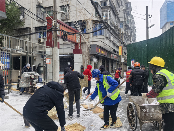 起義門社區(qū)聯(lián)合共建單位中建十八局開展集中清雪。 通訊員供圖