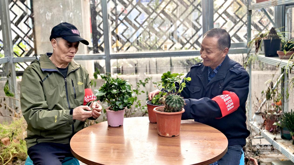 作為“春天鄰里服務(wù)隊”發(fā)起人之一和支部老黨員,周榮良是看著這些變化一點點發(fā)生的。最早動員大家時,他領(lǐng)著幾位老黨員,挨家挨戶敲門,話也說得實實在在:“咱們一起試試,先清出一小塊地也行?!庇腥丝?,有人問,可更多的鄰居還是打開了家門——退休的居民搬出了家里不用的花盆;做水電工的師傅答應幫忙安裝澆水的水管;連剛上學的小孩子,也捧來了自己養(yǎng)的小多肉。