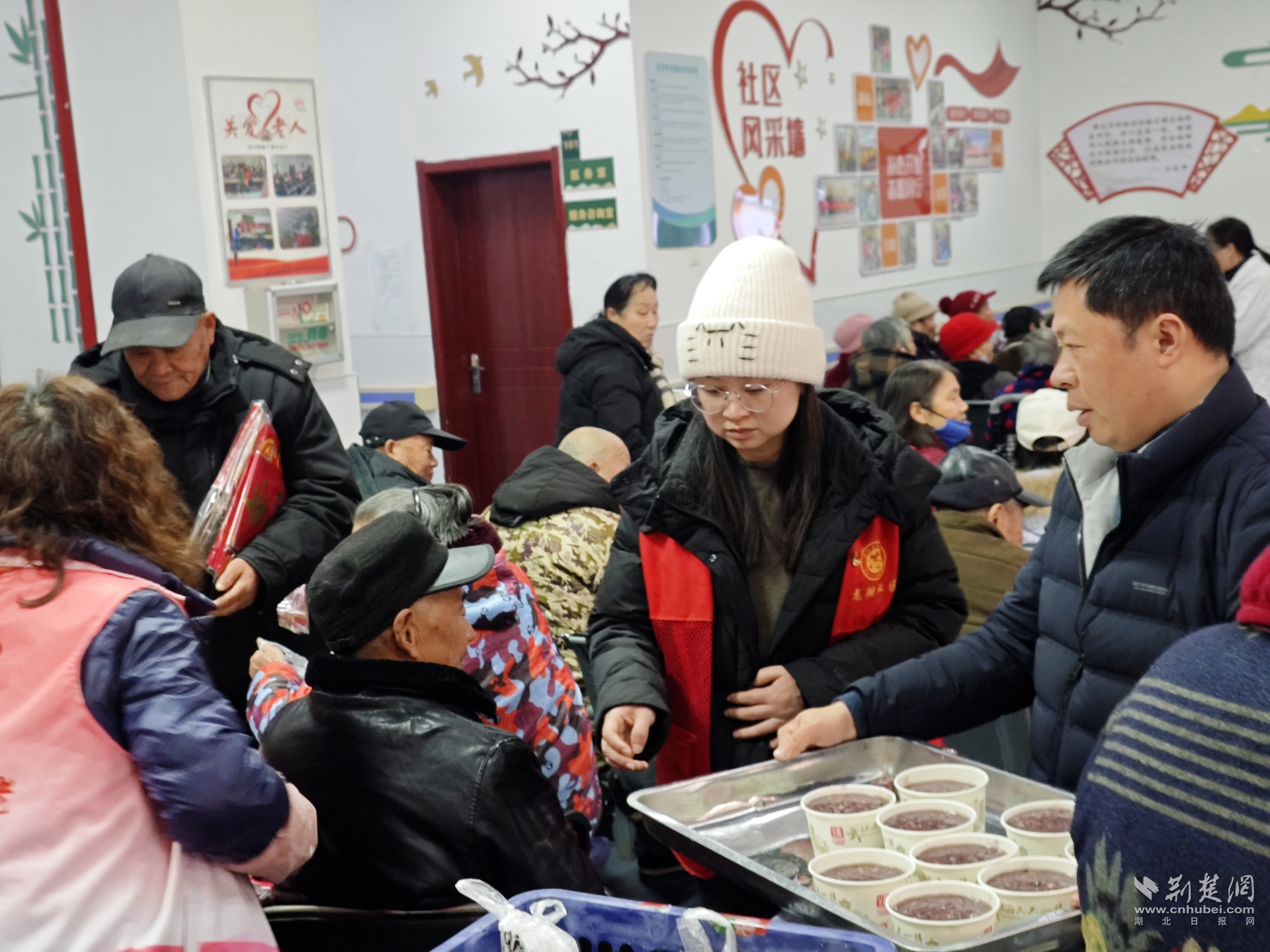 針對高齡、獨居及行動不便的老人,小軍山社區(qū)專門組建志愿小分隊,開展“入戶送溫暖”行動。志愿者們敲開老人的家門,送去臘八粥和慰問品,并與他們親切拉家常,仔細詢問身體和生活近況。當天的社區(qū)老年活動室里同樣暖意融融。老人們歡聚一堂,品嘗著香甜的臘八粥,聽著志愿者講述臘八節(jié)的習俗,現(xiàn)場笑聲不斷,節(jié)日氛圍濃厚。