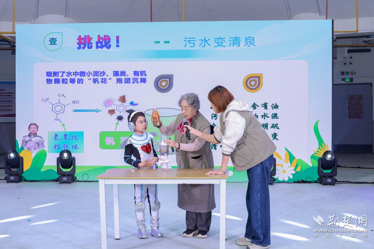 演出結(jié)束后,科普專家熊永紅教授和劉漢生老師開展趣味小論壇,進(jìn)一步延伸劇中知識(shí)點(diǎn)。熊教授現(xiàn)場(chǎng)復(fù)刻“污水變清水”實(shí)驗(yàn),讓孩子們直觀感受凈水原理;劉老師則結(jié)合江漢湖泊生態(tài)解答“江漢魚是否只屬于江漢區(qū)”的問(wèn)題,并分享專屬繪本,引導(dǎo)孩子在互動(dòng)中理解科學(xué)。