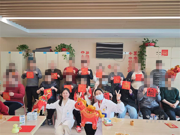 文藝表演環(huán)節(jié),病友代表登臺(tái)演唱歌曲,勇敢展現(xiàn)自我風(fēng)采,傳遞出積極向上的精神狀態(tài)。在“拓印福字”民俗體驗(yàn)中,大家親手制作福字并裝飾儲(chǔ)物柜,在儀式感中感受傳統(tǒng)文化魅力與新春祝福。