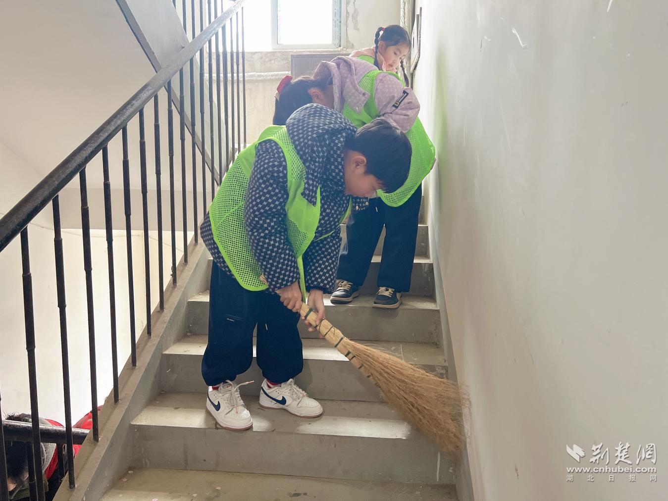 活動中青少年們化身“環(huán)保小衛(wèi)士”進(jìn)入樓棟開展衛(wèi)生打掃。通訊員供圖