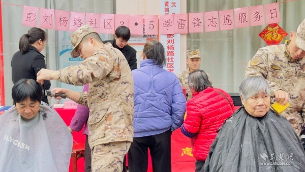 愛(ài)心義剪顯真情。在彭劉楊路社區(qū),武警武漢船艇大隊(duì)的戰(zhàn)士們開(kāi)設(shè)“迷彩理發(fā)廳”,為高齡獨(dú)居老人精心修剪發(fā)型,剪刀翻飛間,老人們精神煥發(fā),臉上也洋溢著舒心的笑容。在西廠口社區(qū),東湖康養(yǎng)志愿者用一把剪刀傳遞關(guān)愛(ài),活動(dòng)現(xiàn)場(chǎng)還有黃鶴樓街道社區(qū)教育學(xué)院學(xué)員們帶來(lái)的精彩文藝表演,更為便民集市增添了歡聲笑語(yǔ),讓居民在享受服務(wù)的同時(shí),感受到濃濃的鄰里溫情。
