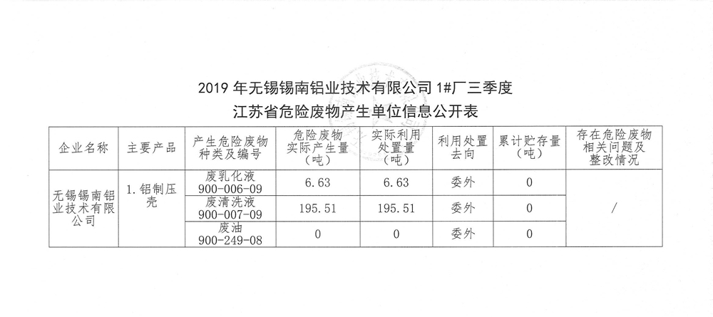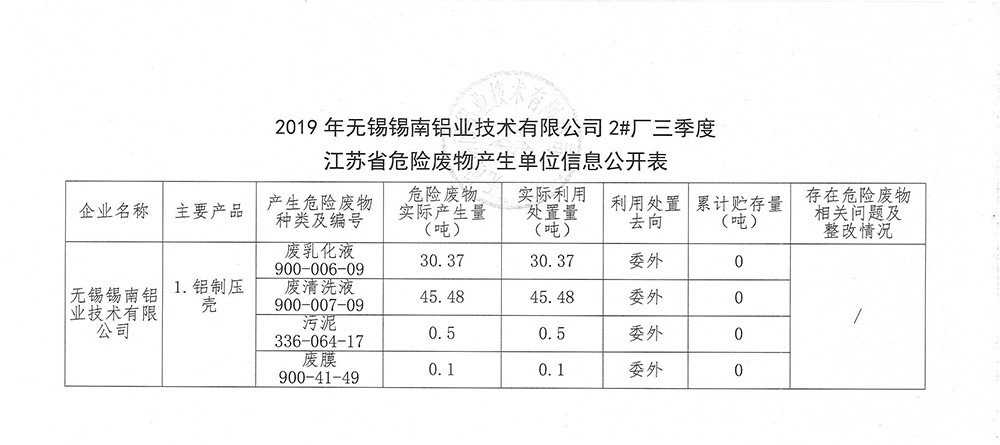 江蘇省危險(xiǎn)廢物產(chǎn)生單位信息公開表(三季度)