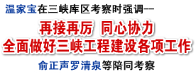 荊楚網消息(湖北日報) 記者陳永和報道:在三峽二期工程建設順利完成、三期工程全面展開之際,中共中央政治局常委、國務院總理、國務院三峽工程建設委員會主任溫家寶25日至26日赴我省三峽庫區(qū)考察。他指出,三峽工程是舉世矚目的千秋偉業(yè)。_________________________________________________________________________