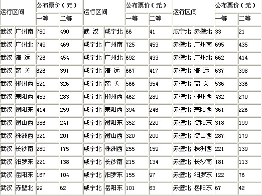 荊楚網(wǎng)消息 (楚天都市報) (記者董鳳龍 通訊員劉強 李慶)昨日,武廣鐵路客運專線有限責(zé)任公司公布武廣客專沿線各車站試行運價。