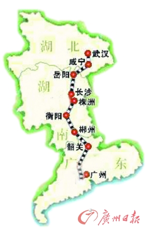 按照目前的列車時(shí)刻,廣州至長(zhǎng)沙需6~8小時(shí);而廣州至武漢則需10個(gè)小時(shí)左右。武廣高鐵通車后,廣州至長(zhǎng)沙只需2個(gè)小時(shí),到武漢只需3小時(shí)。城市之間距離的縮短,首先帶來的是粵、湘、鄂三地人員的流動(dòng)。屆時(shí),佛山人可以搭乘武廣高鐵,早上在佛山飲早茶,中午到長(zhǎng)沙吃湘菜,下午在武漢登黃鶴樓嘆江風(fēng)。
